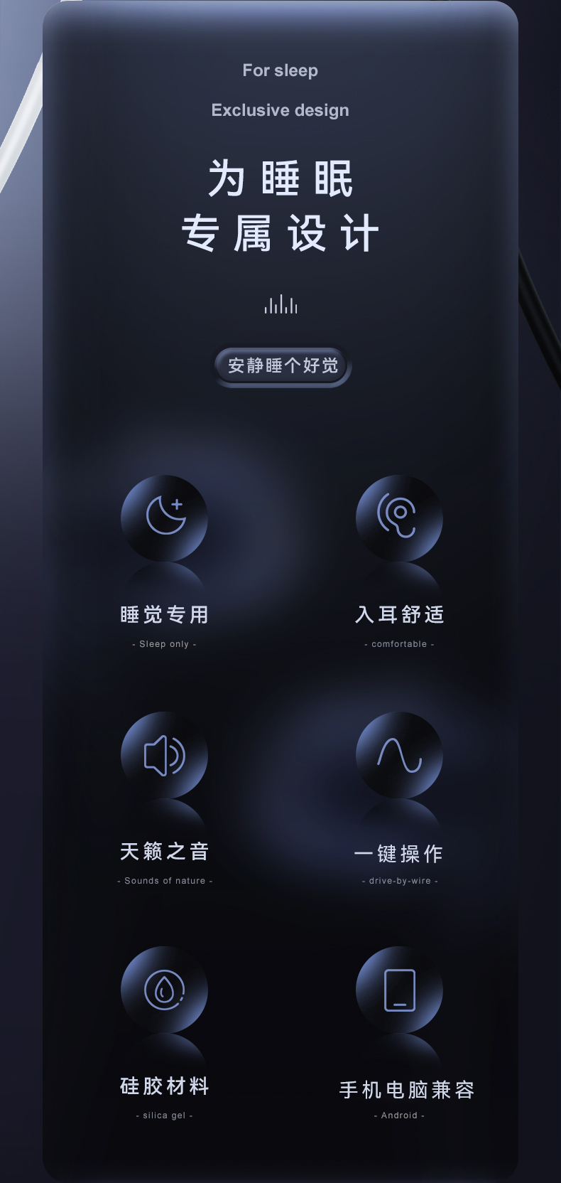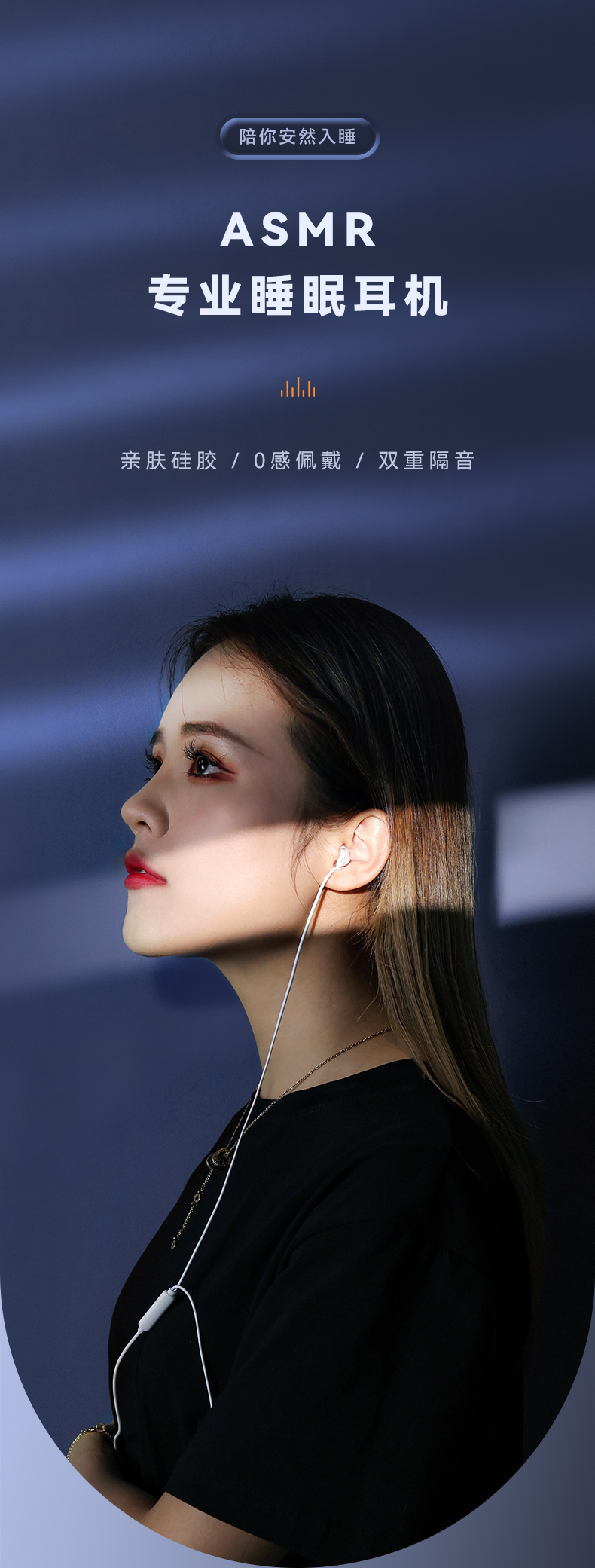 品胜有线睡眠耳机线控入耳式Type-C孔(黑色)安卓手机苹果6通用华为小米耳麦游戏原装正品吃鸡电脑降噪侧睡专用