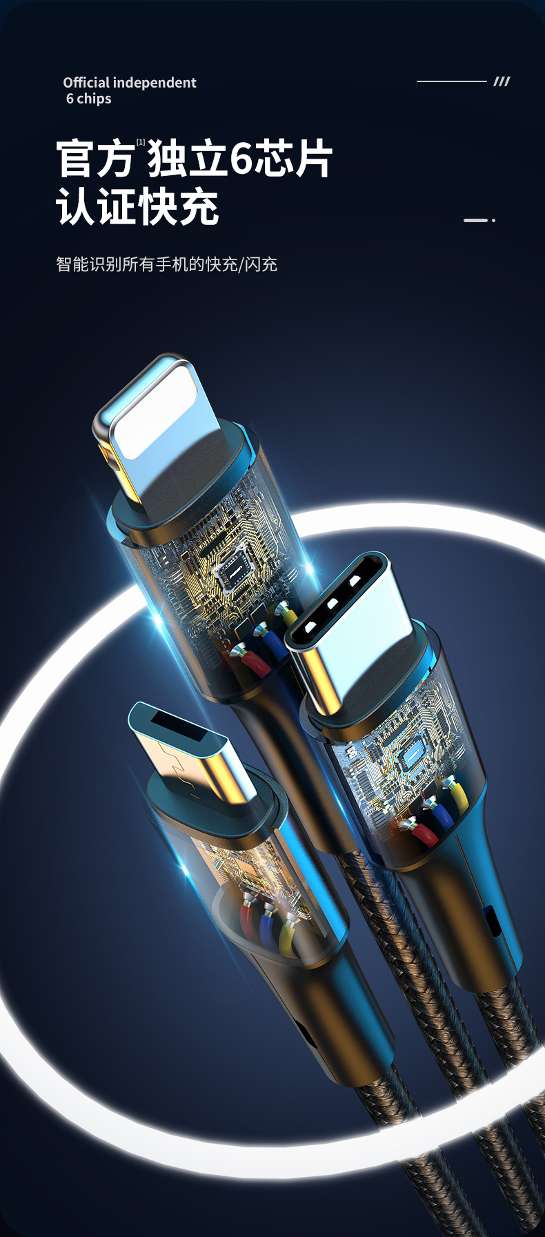 品胜苹果13数据线三合一快充iPhone11充电线器一拖三车载加长适用华为安卓Typec三头多功能闪充平板通用正品